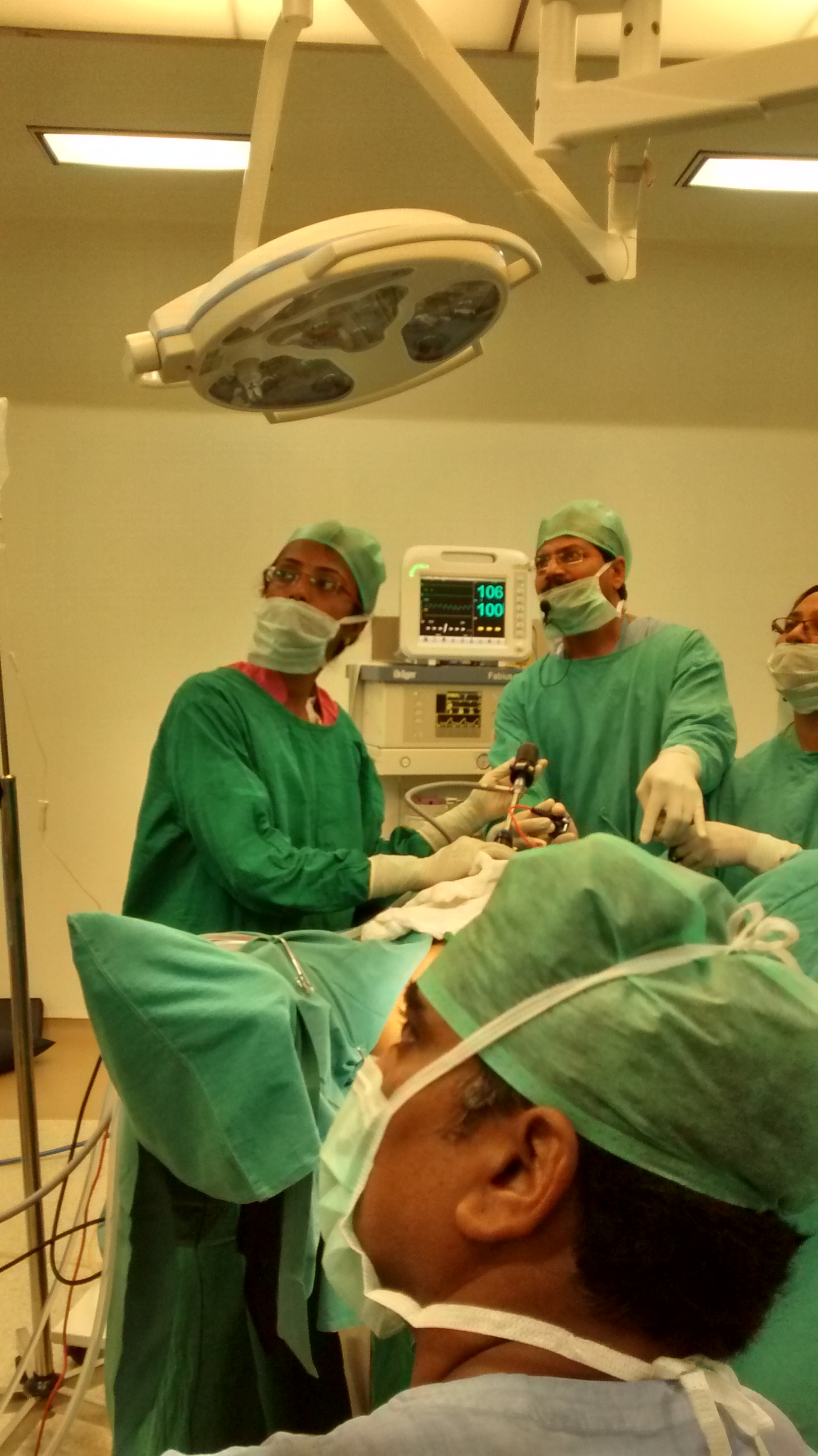 IMG 20160128 WA0009 laproscopy Total laproscopic Hysterectomy Laparoscopic myomectomy- removal of fibroids Lap ovarian cystectomy- removal of ovarian cyst wall. Laparoscopic colpopexy for vault prolapse (post hysterectomy). Lap sling surgeries for uterine descent in nulliparous women. Minimally invasive Neovagina formation for Vaginal agenesis Laparoscopic salpingostomy, salpingectomy Lap ovarian drilling for PCOD ( polycystic ovaries) laparoscopic removal of Endometriotic cysts Operative laparoscopy for Deep infiltrating endometriosis (DIE) : excision of all endometriotic lesions Lap adhesiolysis. Lap neosalpingostomy (fimbrial blocks of fallopian tubes) Lap tubal recanalization (LTR) - Tubo-tubal Anastomosis Lap metroplasty for bicornuate uterus Lap removal of rudimentary horn and noncommunicating horn of uterus ( congenital anomalies ) Lap oophoropexy – fixation of ovaries to prevent recurrence of torsion. Lap removal of ambiguous gonads ( Genetic disorders) to prevent cancers Preventive oophorectomy in cases of breast cancer lap cystocoele repair lap enterocoele repair lap for lateral vaginal wall prolapse Diagnostic and operative laparoscopy for fertility evaluation Laparoscopic internal iliac artery ligation for post hysterectomy intraperitoneal haemorrhage HYSTEROSCOPY Hysteroscopic adhesiolysis (for adhesions inside the uterus : Asherman's syndrome) Hysteroscpic septum incision ( for intrauterine septum ) Hysteroscopic myomectomy ( for submucosal fibroids) Hysteroscopic polypectomy ( for endometrial polyps ) Hysteroscopic fallopian tube cannulation ( for cornual block ) Hysteroscopic TCRE ( transcervical resection of endometrium : for dysfunctional uterine bleeding ) Hysteroscopic removal of missing IUCD Hysteroscopic foreign body removal Hysteroscopic endometrial biopsy Cervicoscopy Vaginoscopy UROGYNAECOLOGY Stress Incontinence surgeries : TVT, TOT, TVT-O Burch colposuspension Pelvic Floor Surgeries Lateral cystocoele repair INFERTILITY , SUBFERTILITY Evaluation - male & female Endoscopic corrective surgeries – Laparoscopic & hysteroscopic Induction of ovulation Follicular monitoring Intrauterine inseminations IVF ICSI EMERGENCY LAPAROSCOPY Lap for twisted Ovarian cysts Lap TO masses – Acute PID Lap hemoperitoneum – Ruptured Corpus luteum cysts etc Lap ruptured Endometriomas Lap for Post operative complications – Peritonitis, hemoperitoneum, urinary ascitis etc Lap ectopic pregnancy GYNAECOLOGICAL ONCOLOGY Laparoscopic Radical Hysterectomy ( Werthiems hysterectomy ) Laparoscopic pelvic and para-aortic Lymph node dissection Laparoscopic omentectomy Ovarian malignancies laparoscopic trachelectomy and parametrical resection for post hysterectomy cervical cancer Lap biopsy for cancers Hysteroscopy guided endometrial biopsy for endometrial cancer LAPAROSCOPY IN PREGNANCY Ovarian cyst in pregnancy Laparoscopic cervical encirclage for cervical incompetence ( Recurrent pregnancy loss : RPL) Heterotrophic Pregnancy ( coexistent intrauterine and extrauterine i.e ectopic pregnancy)